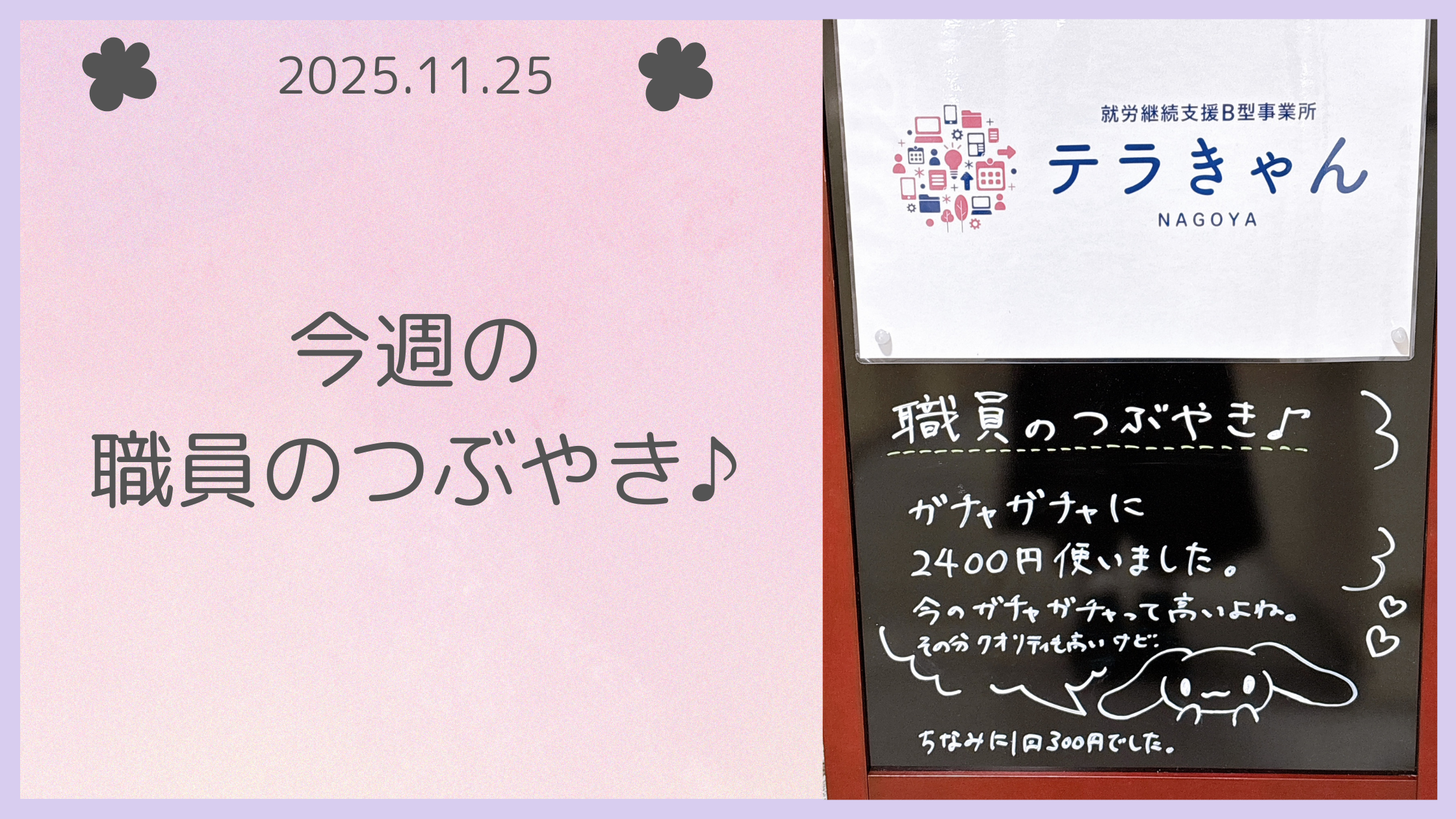 就労継続支援B型事業所テラきゃん運営スタッフHです(*’ω’*)