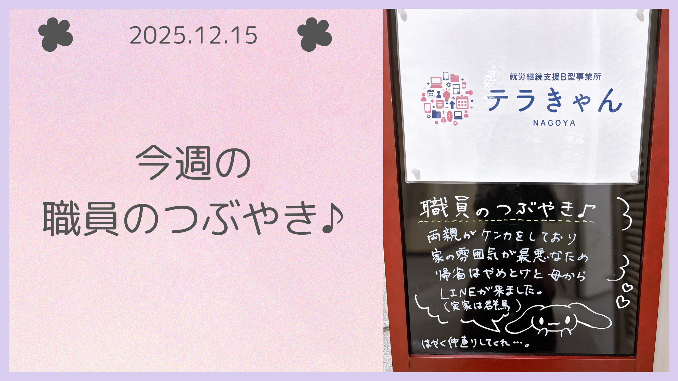 就労継続支援B型事業所テラきゃん運営スタッフHです(*’ω’*)